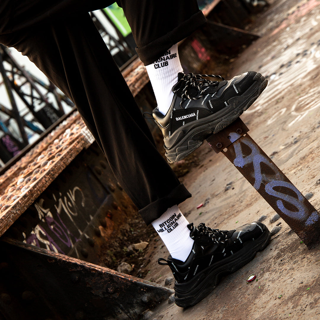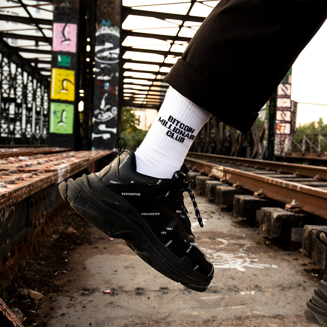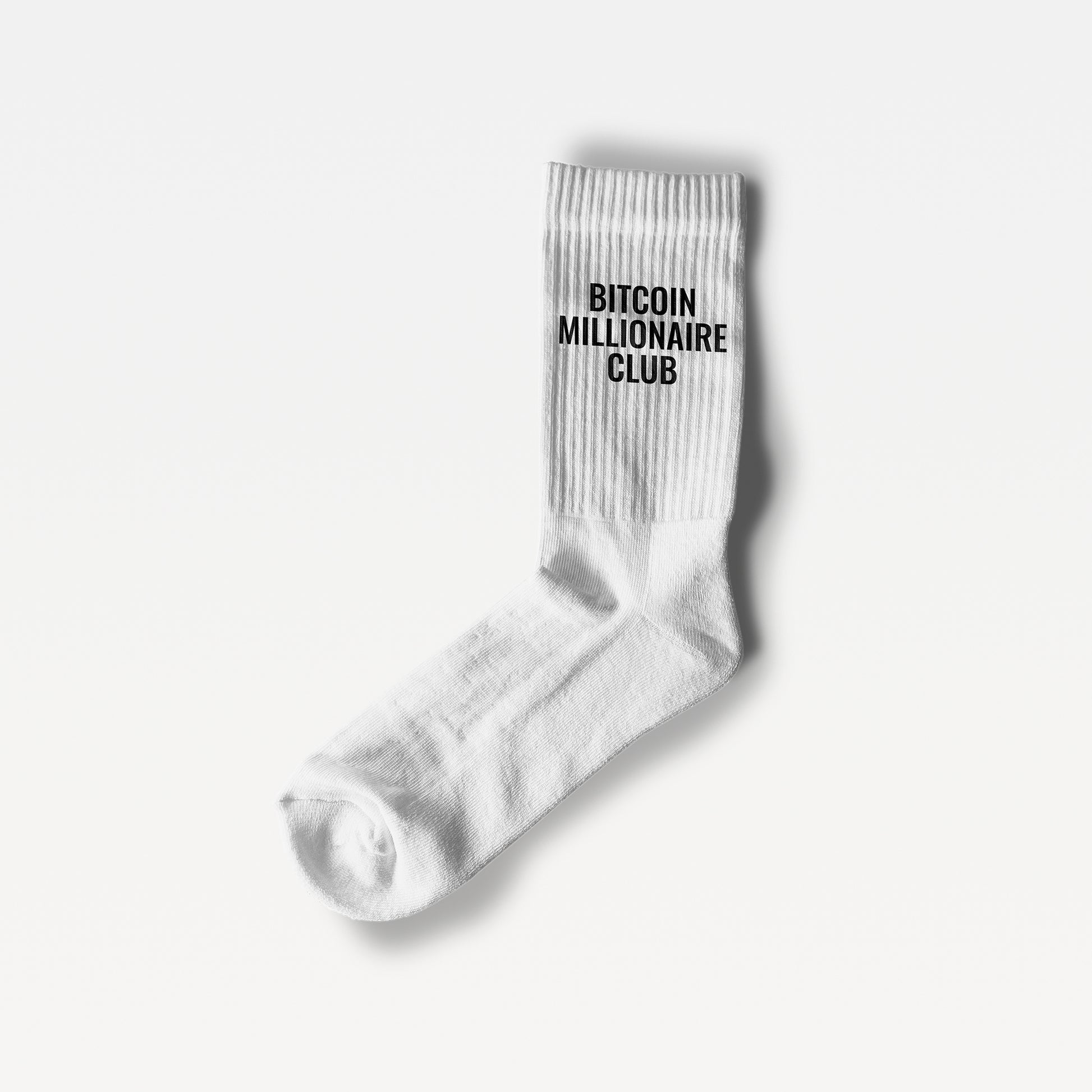 "BITCOIN MILLIONAIRE CLUB" est une paire de chaussettes proposée par CryptoStories, une marque spécialisée dans les chaussettes crypto. Cette paire de chaussettes est parfaite rejoindre le club des millionnaires de Bitcoin et affichez votre confiance en ce futur monétaire incroyable. Elle est confortable et légère, et permettra à son propriétaire d'afficher son soutien pour le développement des crypto et de la blockchain.